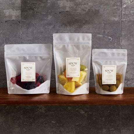 【IWS(白)】チャック付スタンドパック袋OP#20//透明蒸着PET#12//CP#50