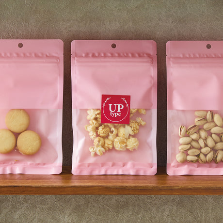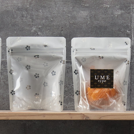 【UME】チャック付スタンドパック袋(表)OP#20//透明蒸着PET#12//CP#50(裏)OP#20//VMPET#12//CP#50