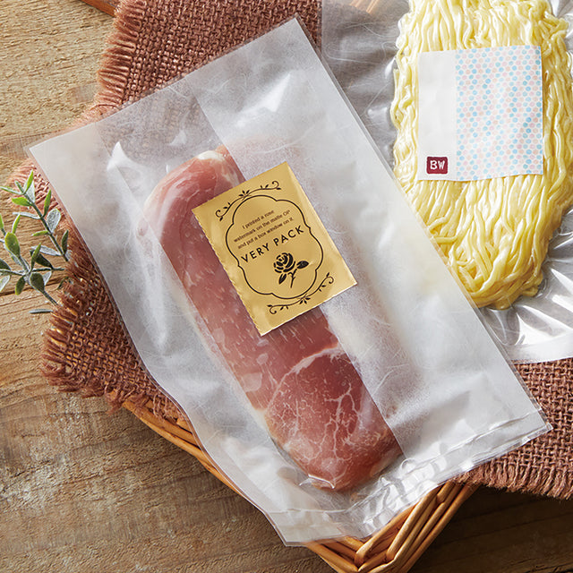 バリア性のあるナイロンフィルムに雲流柄を印刷し高級感を持たせ、より商品を引き立たせるオリジナル規格袋です。