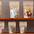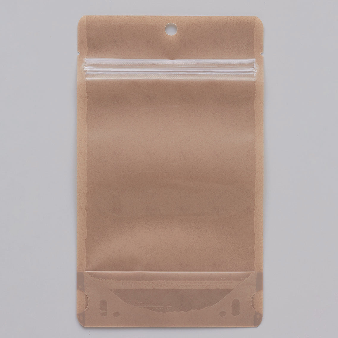 クラフト調に印刷が施された、チャック付スタンドパック袋です。