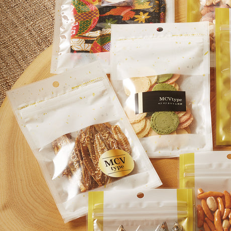 【AG(金)】チャック付三方袋(表)マットバリアOP#20//PET#12//CP#40 (裏)マットOP#20//VMPET#12//CP#40