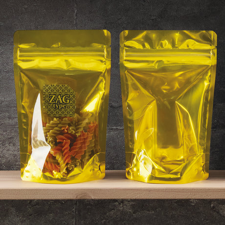 【ZAG(金)】チャック付スタンド袋(表)OP#20//透明蒸着PET#12//CP#50(裏)OP#20//VMPET#12//CP#50
