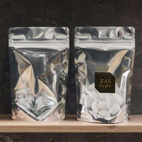 【ZAS】チャック付スタンド袋(表)OP#20//透明蒸着PET#12//CP#50(裏)OP#20//VMPET#12//CP#50