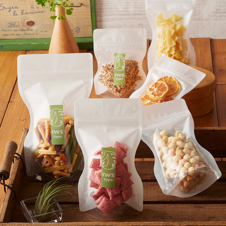 【IWS(白)】チャック付スタンドパック袋OP#20//透明蒸着PET#12//CP#50