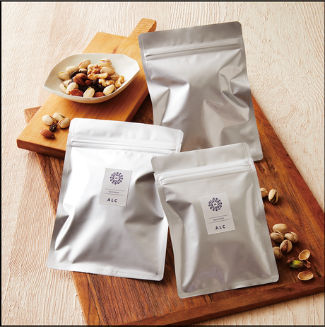 【AS(銀)】チャック付三方袋(表)マットバリアOP#20//PET#12//CP#40 (裏)マットOP#20//VMPET#12//CP#40