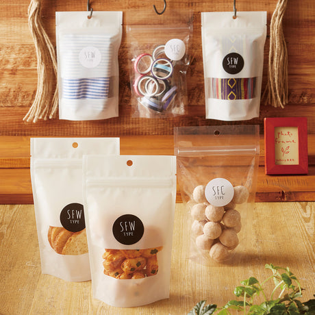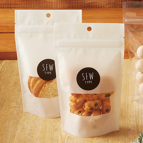 【SFW(白)】チャック付スタンドパック袋OP#20//透明蒸着PET#12//CP#50