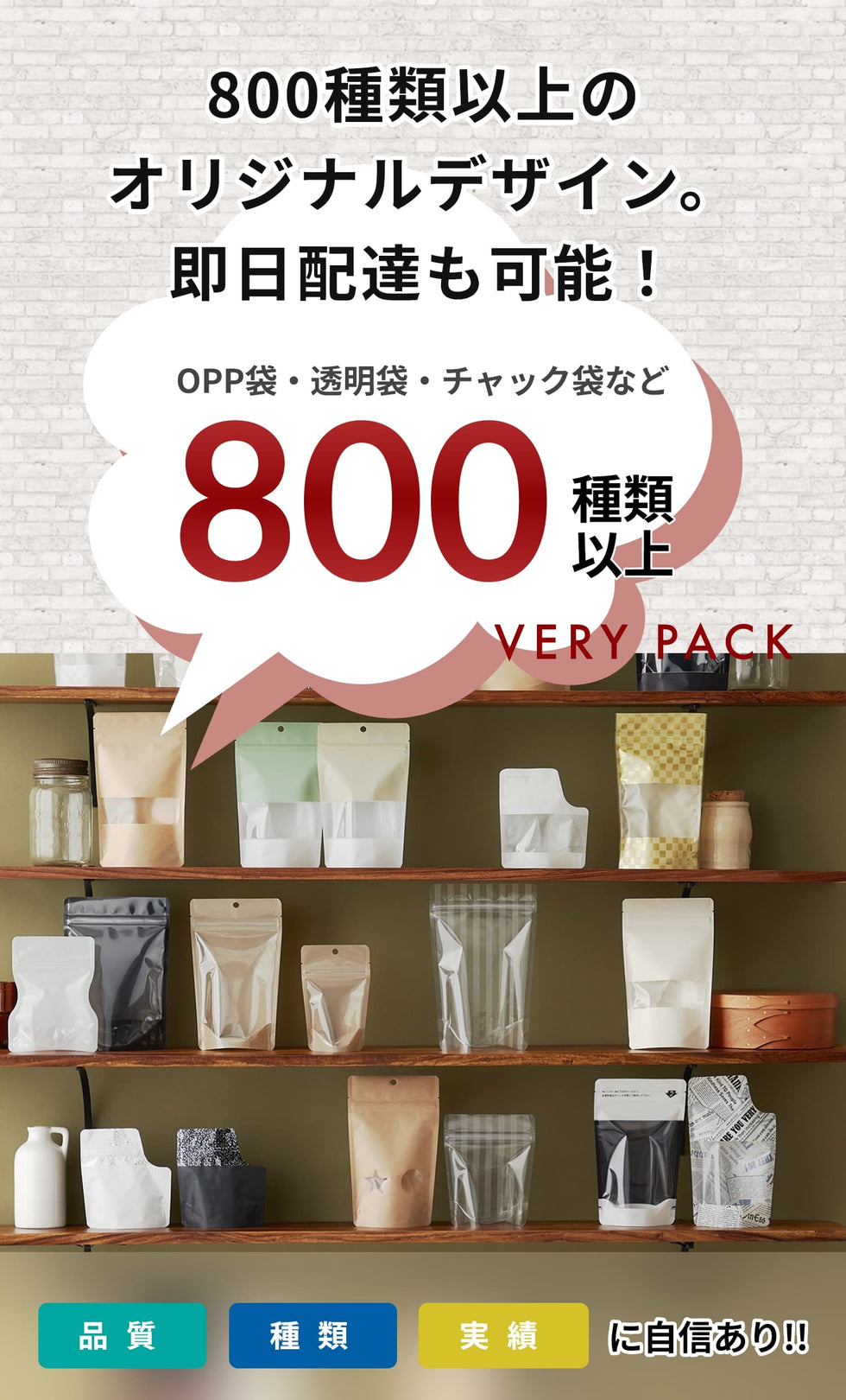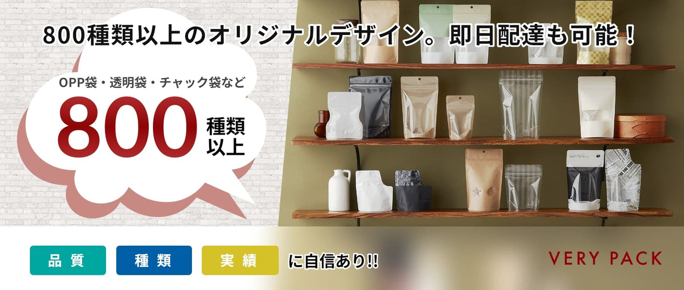 ベリーパックで取り扱っているパッケージの数はなんと800種類以上!食品用印刷袋・OPP袋・透明袋・チャック袋など、ベリーパックオリジナル印刷規格袋が揃っていますので、欲しい袋が必ず見つかります! -