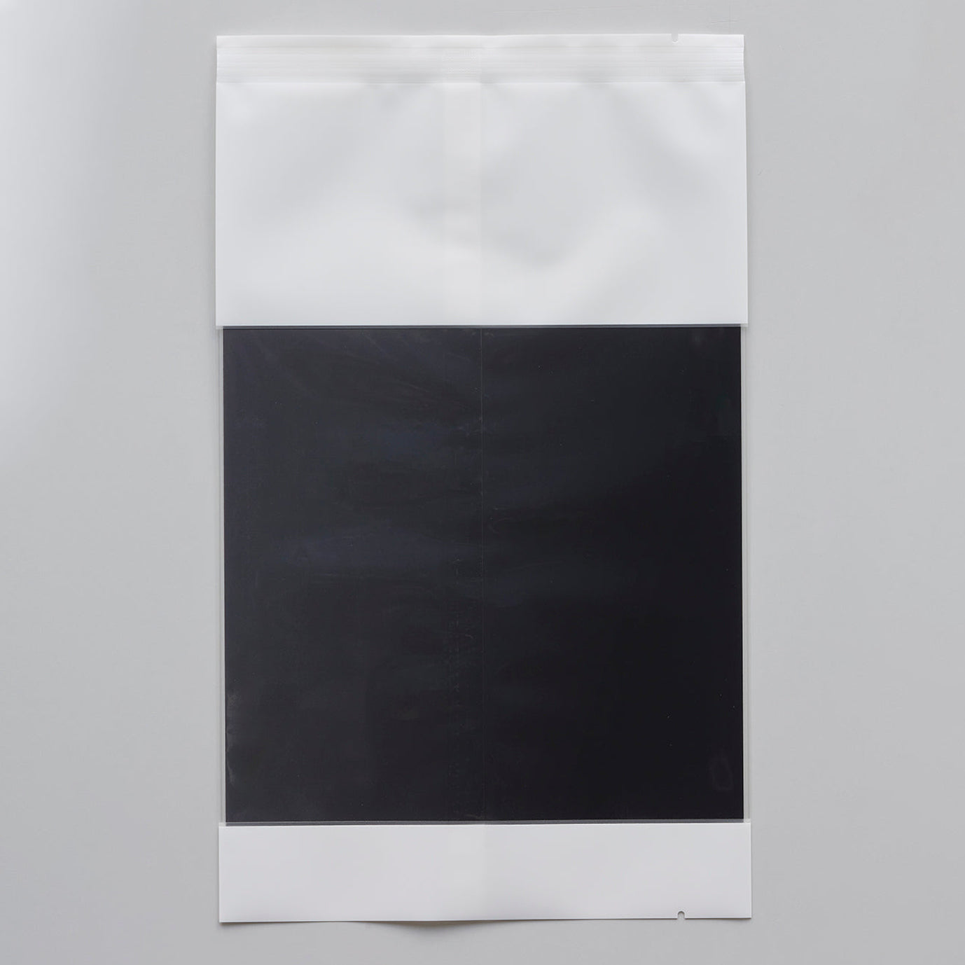 四角窓で中身が一目瞭然、内側に黒を敷き詰めた贅沢な白柄の合掌袋です。