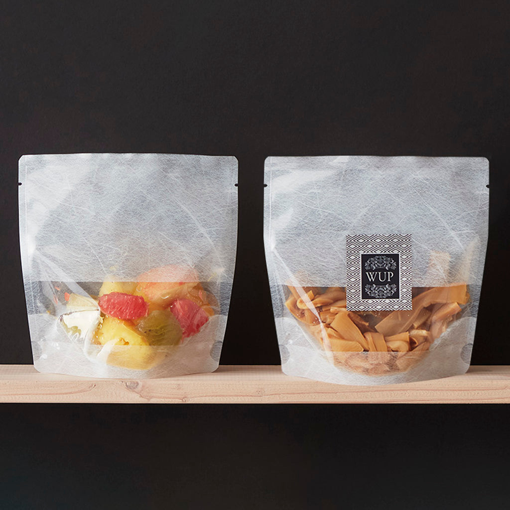 雲流柄のバリアナイロンスタンドパック。窓を設けているので中身もしっかりとみえます。